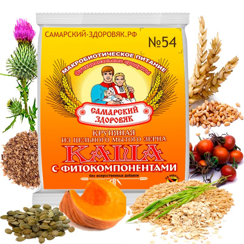 Каша Здоровяк №54 имеет очень оригинальный состав, который оказывает выраженное положительное действие на больную печень - хронический гепатит, в том числе алкогольной этиологии, цирроз печени, острый гепатит (болезнь Боткина), синдром Жильбера. Показано ее применение при заболеваниях почек в хронической фазе и при почечно-каменной болезни, при хронических колитах со склонностью к запорам, при пиелонефритах, острых и хронических циститах и некоторых формах уретритов. Каша активно нормализует электролитный баланс в организме, тем самым снижает артериальное давление, нормализует трофику (питание) кожи, поэтому она рекомендуется при хронических атопических дерматитах, при заболеваниях сердечно-сосудистой системы с отеками, длительно температурящим больным (при ОРВИ, гриппе и др. вирусных инфекциях). Каша обладает выраженным антиоксидантным действием. Вечерний прием каши обеспечивает хороший, продолжительный сон.