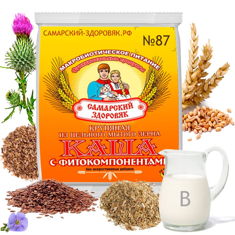 Каша Здоровяк № 87 – применяется для общего очищения организма, в том числе от ряда патогенных организмов, рекомендуется для диетического и постного питания, коррекции веса. Антипаразитарный эффект обусловлен уникальными иммуностимулирующими свойствами каши и повышением противовирусной и антибактериальной защиты. Линганы, богатейшим источником которых является льняное семя, входящее в состав каши, защищают организм от ряда гормонально зависимых онкологических заболеваний, в частности, рака молочной и предстательной желез. Каша 87 - отличное средство для надежной защиты в период всевозможных эпидемий!